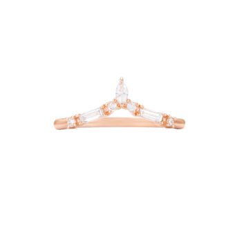 This moss agate ring captures the essence of Art Deco sophistication with its geometric precision and elegant design. The centerpiece is a hexagon-cut moss agate, framed by sparkling baguette diamonds that echo the clean lines of early 20th-century style. The sleek band complements the structured beauty of the stones, making this ring a modern heirloom with a nod to the past’s architectural elegance.