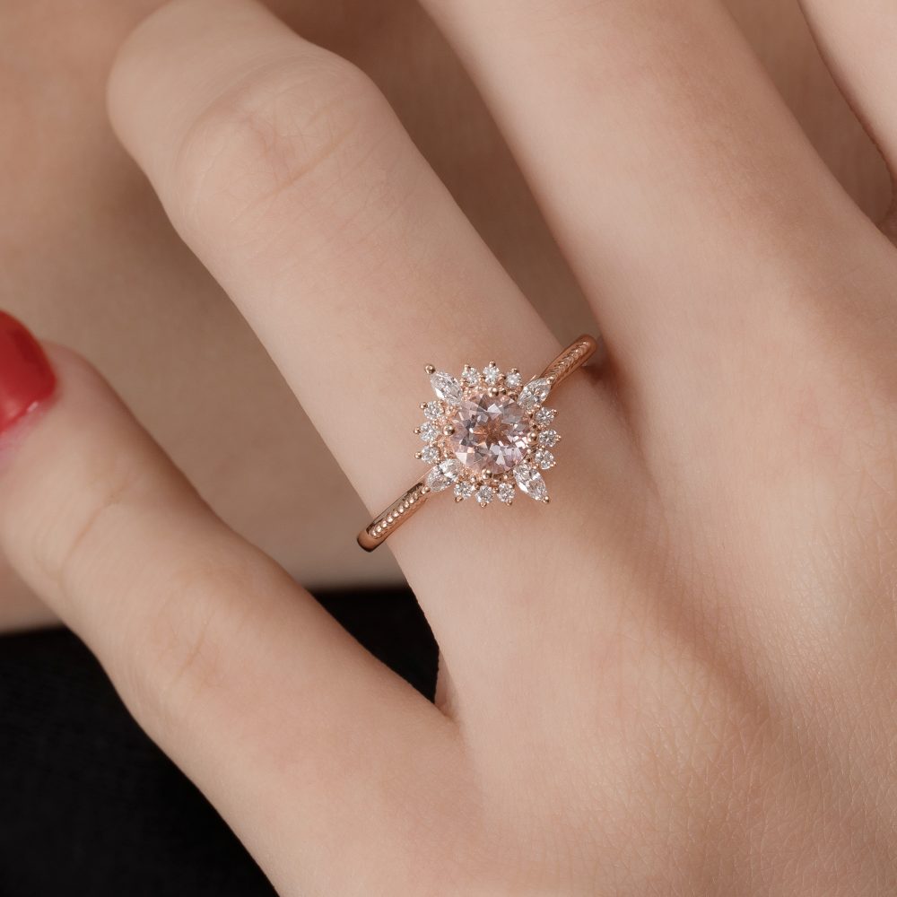 Art Deco Round Morganite Ring – Priscilla