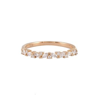 This lavish stone cluster is placed on a raised basket middle, featuring scrolling ribbons underneath. Round brilliant-cut diamonds and fanciful marquise accents are prong-set around the center Morganite stone, giving this design a unique art deco style. A shiny, milgrain band also adds comfort to this striking ring, making it perfect for wearing every day as an engagement or anniversary ring.