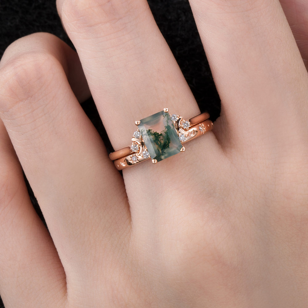 Crescent Moon Emerald Cut Moss Agate Ring – Aspen