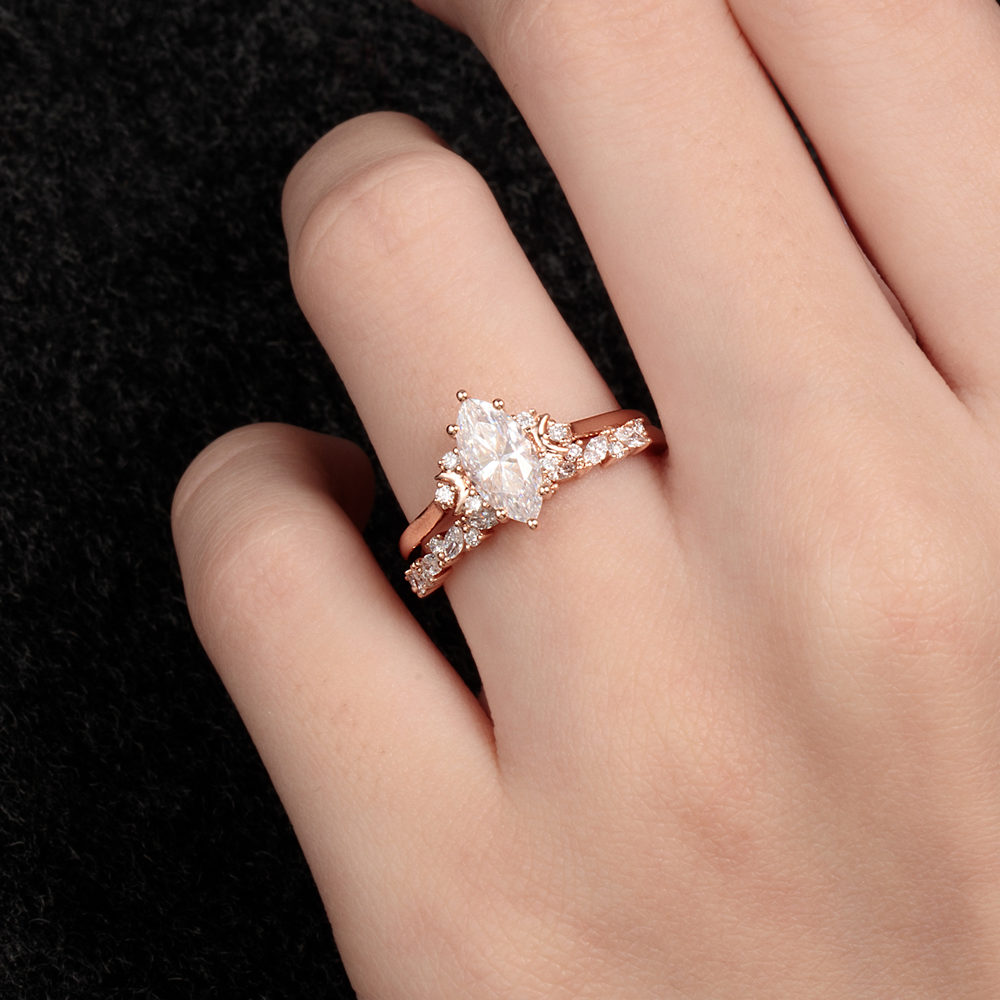 Crescent Moon Marquise Cut Moissanite Ring – Luna