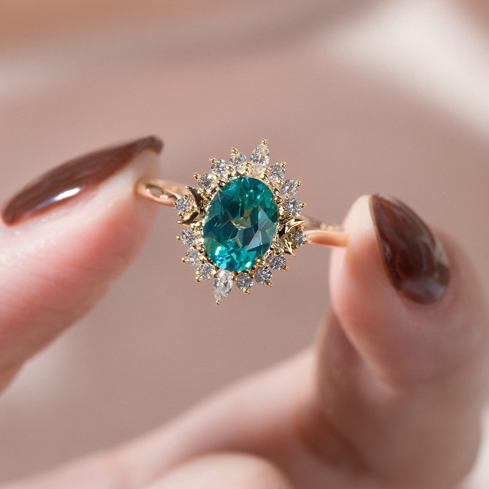 Crescent Moon Oval Cut Mint Green Sapphire Ring – Valley