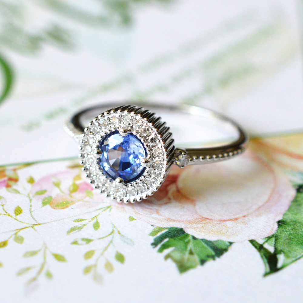 Mesmerizing is the key word for “Genevieve”, as it is tricky not to look at it when its lucky wearer is present in the room. Truly an eye to the soul, the focal blue sapphire is like a pathway to another world, leading to places more ethereal and sublime. The halo of diamonds around it is equally astonishing, giving the sapphire even more impact. “Genevieve” is created for romantic souls, giving them a purely angelic vibe.