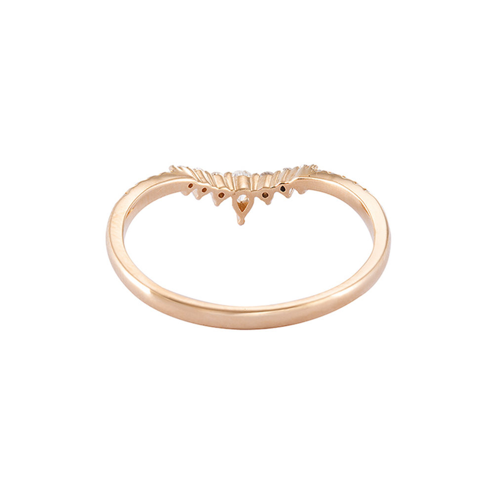 This gorgeous diamond chevron band features a stunning diamond-studded crown shape, making this ring unique and captivating with its v-shaped, Art-Deco-influenced design. A decadent little sprinkle of sparkling marquise diamonds along the top adds fire and glamour to this slender band, all finely crafted in a bright shine. Stack this vintage-inspired diamond band with an engagement ring, other fine bands, or wear it solo on any finger of your selection.