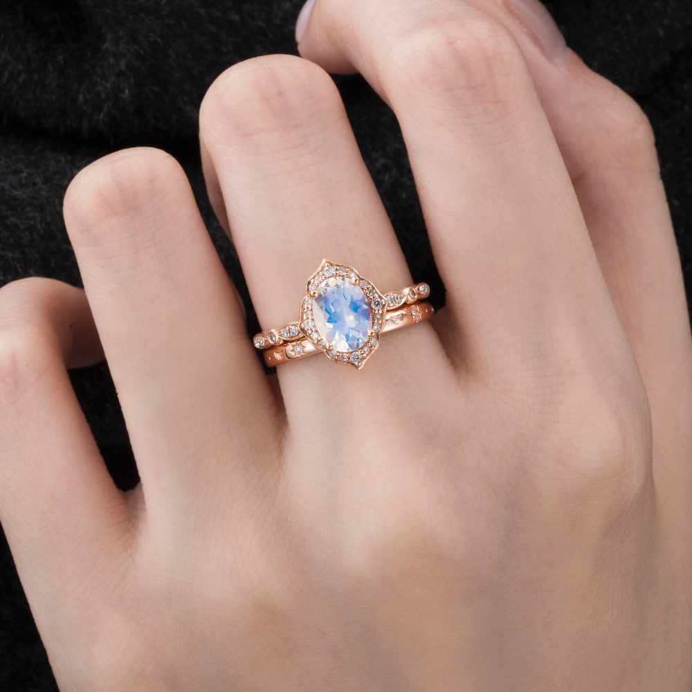 True beauty emerges from within. “Philippa”, the engagement ring with a mystical blue moonstone in the center, is truly a symbol of ocean deep magnificence, ready to become terrestrial at a single glance. The delicate gem is surrounded by a halo, filled with a plethora of white diamonds. What’s more, its upper shank is eye-catching too, with the diamonds spreading there too. “Philippa” is tailor-made for women who know what they want and how to get it.