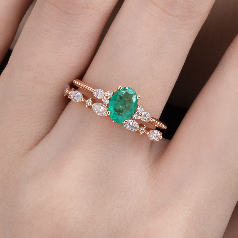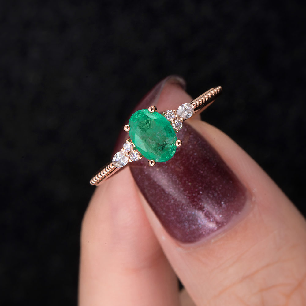 Oval Cut Emerald Diamond Engagement Ring – Cloris