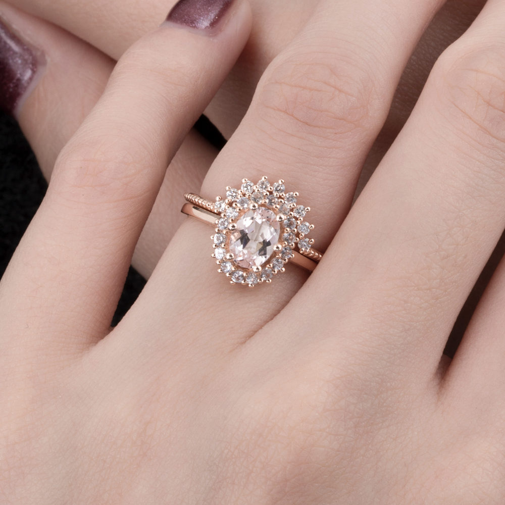 Oval Cut Halo Morganite Ring – Holly