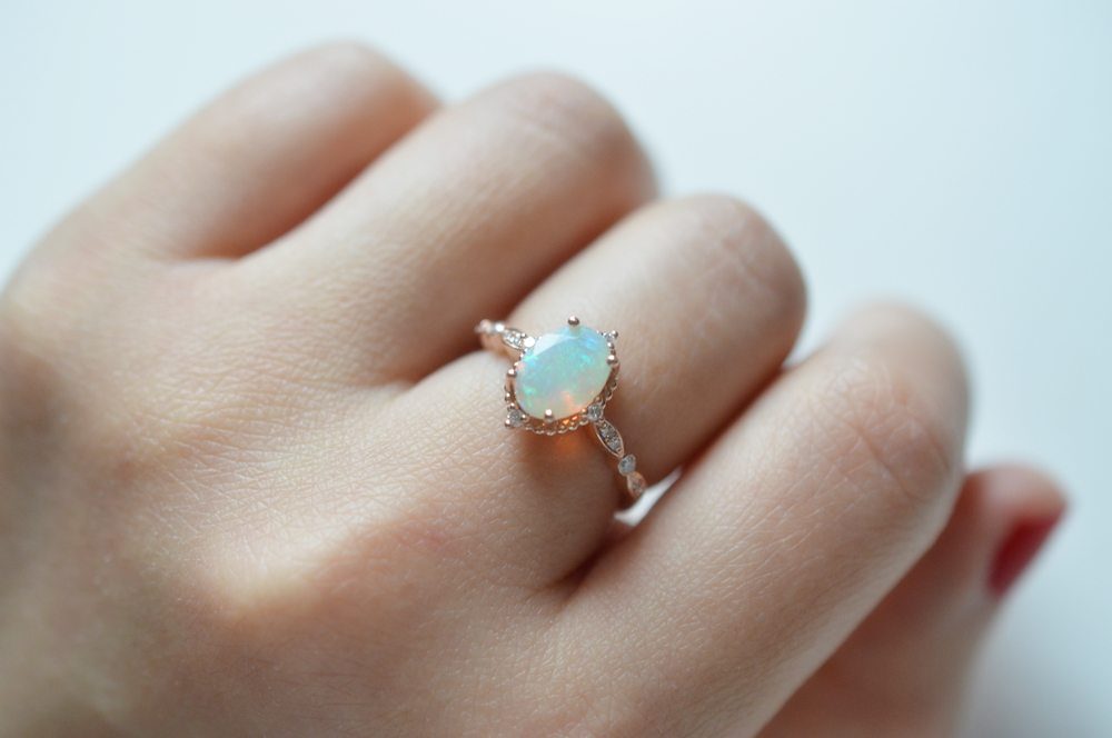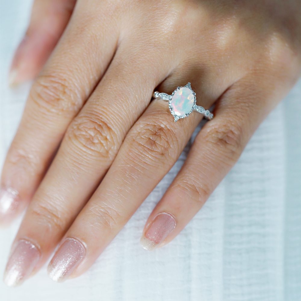 Clear, bright and famous-the perfect “Clara” description. The delicate, vintage design and femininity of this ring generate a great sense of uniqueness to the lady wearing it. The oval opal gemstone mounted onto a special twisted band represents a timeless bond of love and affection that connects two people. Despite the fact that our “Clara” is an engagement ring, she’s also an essential piece that resists time and trends.