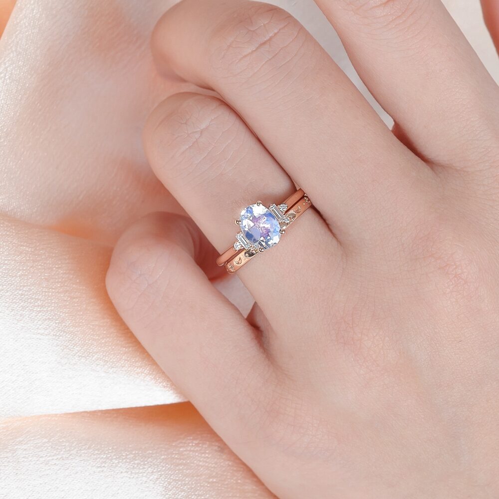 Oval Moonstone And Baguette Diamond Ring – Artemis