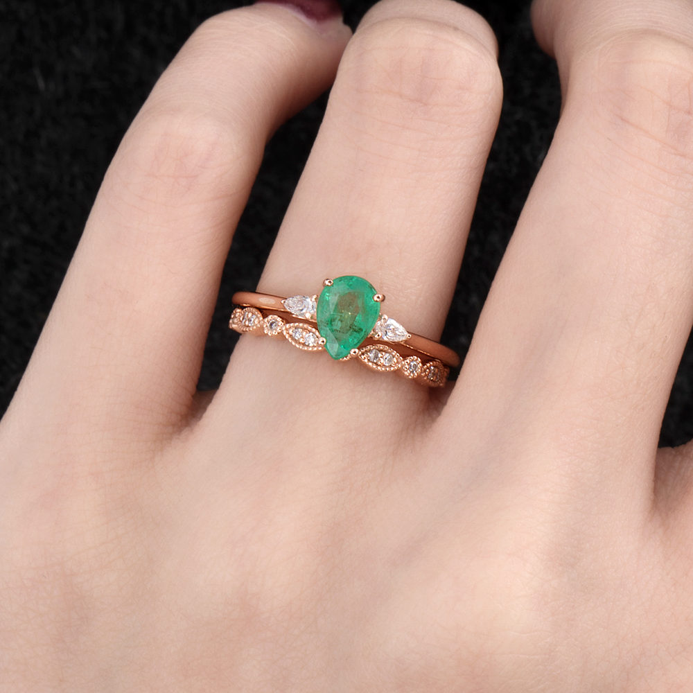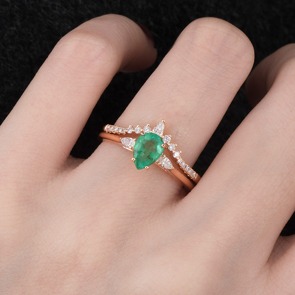 Pearcut Natural Emerald Dimoand Ring – Ash