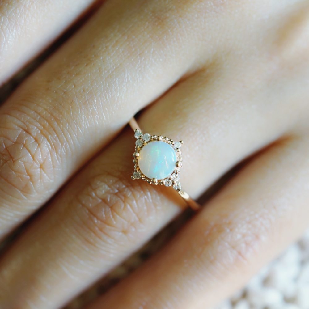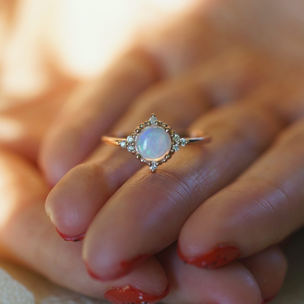 Round Cut Australian Opal Engagement Ring – Eleanor