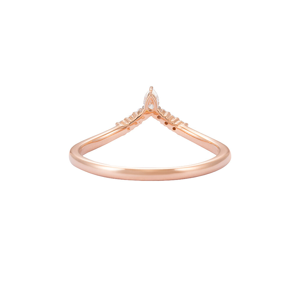 Honor your enduring love with the Ruth wedding band, an elegant seven-stone diamond crown. This band showcases a stunning pear-cut diamond center, flanked by three natural white round-cut diamonds on each side, forming a radiant arc of light. This versatile piece effortlessly pairs with your chosen engagement ring or other fine bands, enabling a unique look each time. Embrace the future with Ruth, an elegant symbol of your journey together, perfectly designed for stacking and adding a touch of timeless elegance.