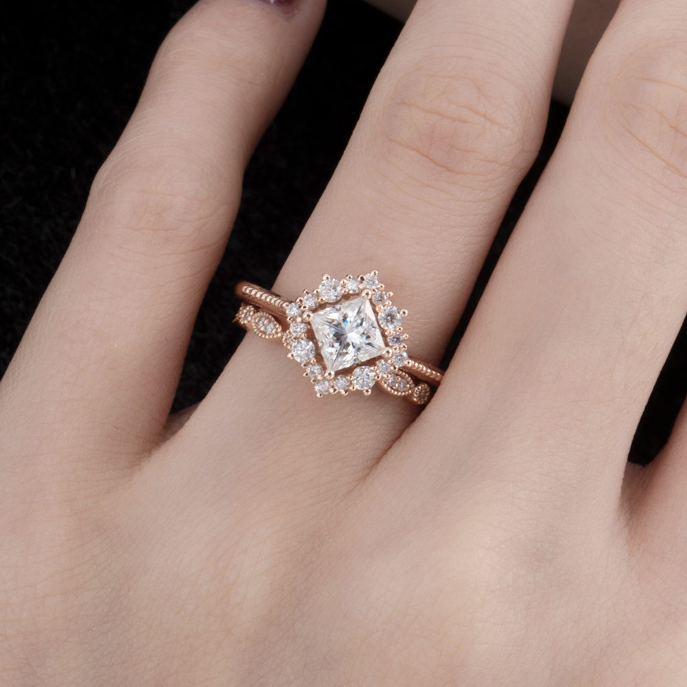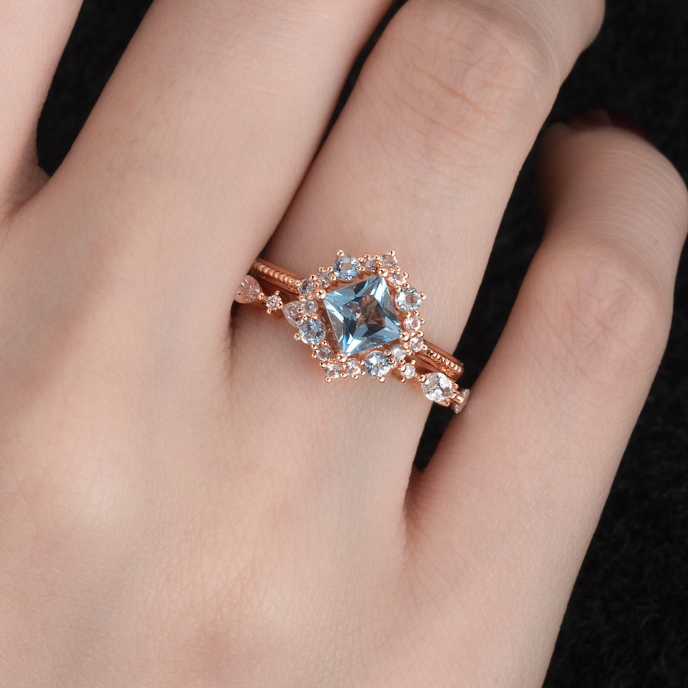 This gorgeous, brightly polished, square-cut Aquamarine engagement ring features incredible color, elegance, and fire. Glittering accent diamonds are prong-set in a decadent display, complemented by the shiny milgrain band that comfortably fits any finger. Graceful openwork underneath the setting of the ring showcases keen attention to detail that adds an eye-catching, luxurious touch. Make picture-worthy memories by gifting this stunning cluster Aquamarine engagement ring to your beloved for any anniversary, birthday, or holiday occasion.