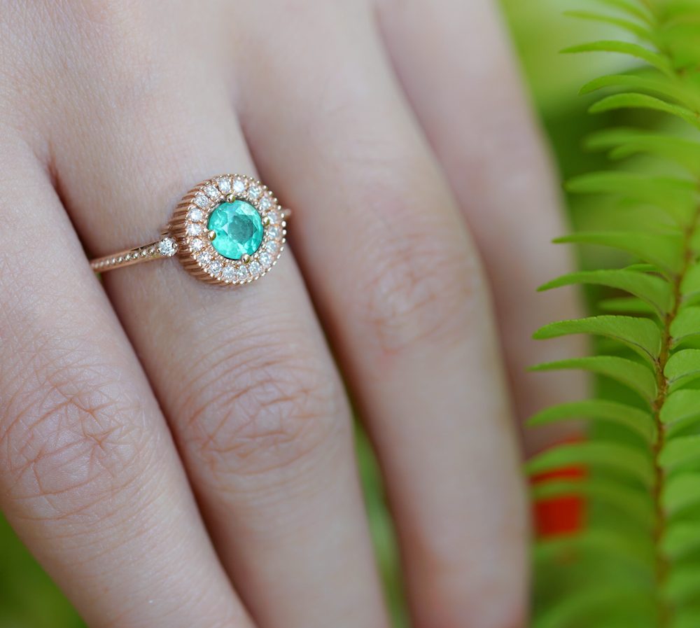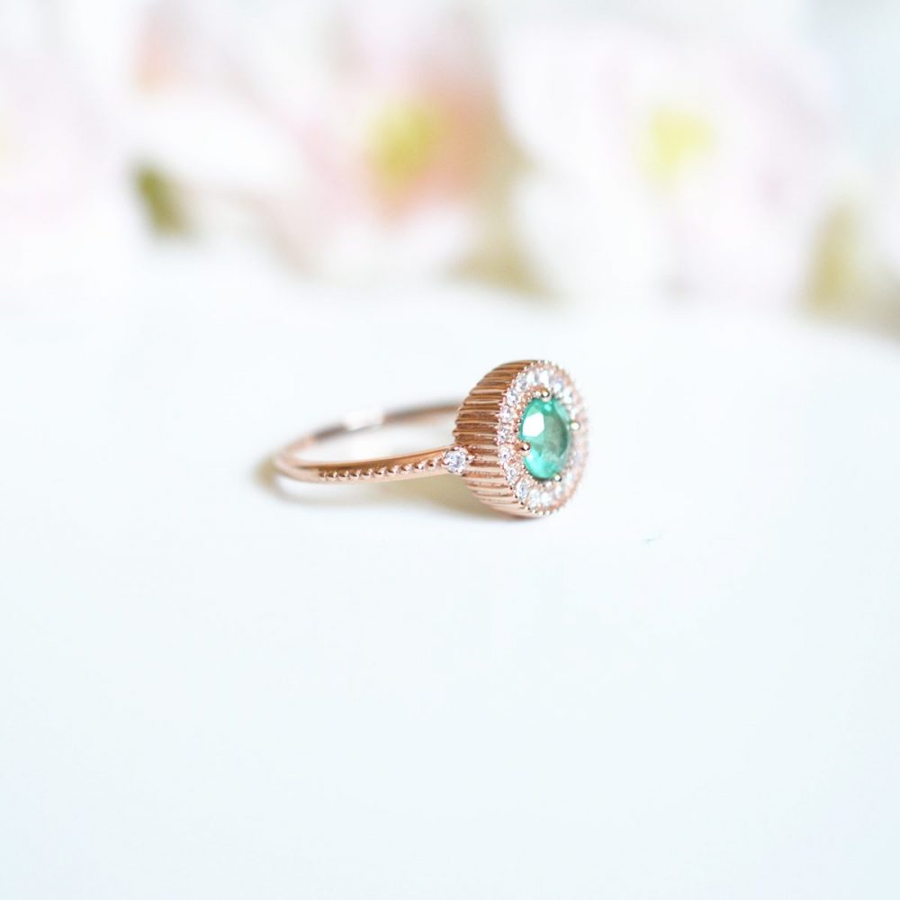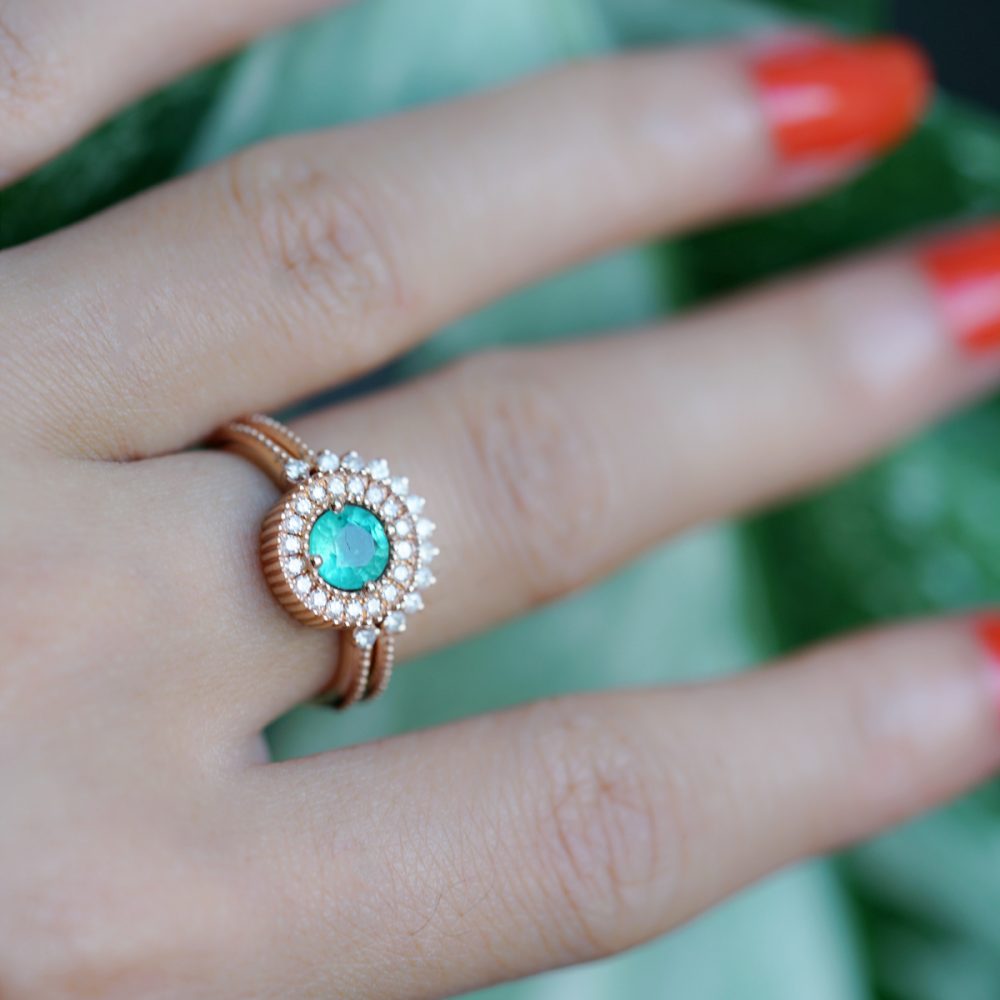 The adorable “Josephine” really has it all; a vivid genuine emerald gem surrounded by bright conflict-free diamonds, but also the vintage aura of a long-lost ring that once belonged to a medieval age queen. Designed to remind you about the true essence of love, our splendid “Josephine” never stops to radiate the energy that makes your world go round. Only one short glance at this intriguing engagement ring always evokes the wild nature and the sharp intuition of its owner.