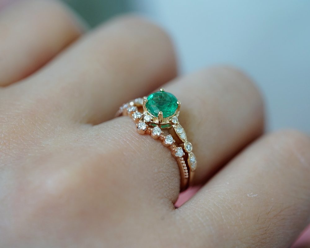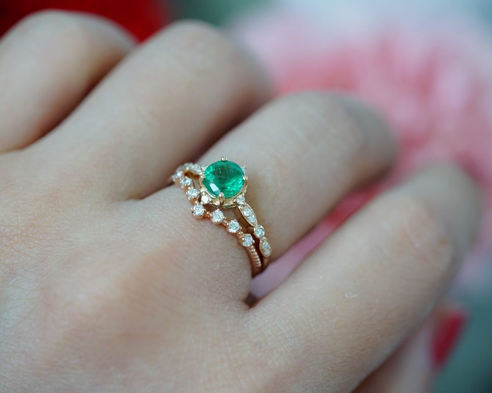 Coming directly from her Majesty’s jewel vault, our flawless “Majestica” will take your breath away. The mesmerizing green emerald gem combined with the sparkling diamond accent stones make this vintage golden ring really unique and glamorous. Have you always dreamt about a queen-worthy engagement? “Majestica” sounds like the only option for all those ladies who know their value and do not accept anything else but perfect.