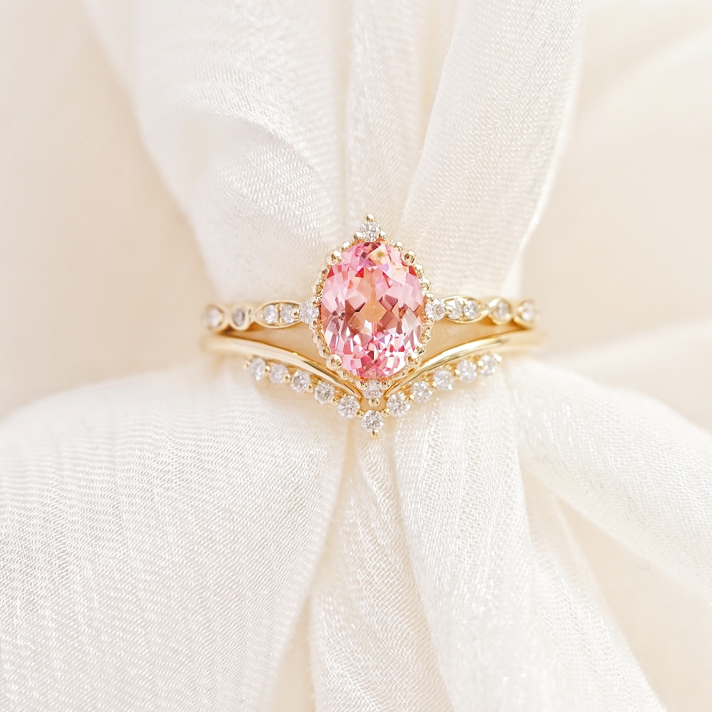 Cherished like a hidden heirloom, Juliet feels as though it has stepped out of another era. At its heart, a softly glowing oval peach sapphire rests in warm gold, its delicate hue evoking romance and quiet strength. Accented with diamond details, the design carries a sense of vintage devotion—timeless, intimate, and deeply personal. Created as an engagement ring or a meaningful symbol of commitment, Juliet honors love that is chosen with intention, and a wearer who knows her own worth.