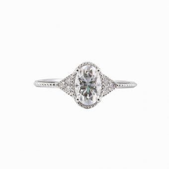 Our wedding band “Zoe” is an emblem of love lasting through time, a symbol of devotion and an agreement between two parties to love and cherish one another for the rest of their days. Nine genuine white diamonds in the center of this V shape ring shine with a dazzling display. Diamonds have been associated with eternity because of their enduring nature and strength, while there is also an association between diamonds and love. The delicate “Zoe” stacks to our oval stone engagement ring collection perfectly.